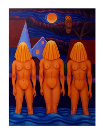 Springfield resident Tim Champoux uses color as a means of expression. His canvases are executed in bold, bright colors, devoid of conventional color harmony, in favor of sharp intensity produces a shimmering lighting effect. Largely self-taught, Champoux credited Donald Reichart, from the George Walter Vincent Smith Museum in Springfield as an important influence on his art making and dedicated the AFTS exhibit to Mr. Reichart (1912-1982).